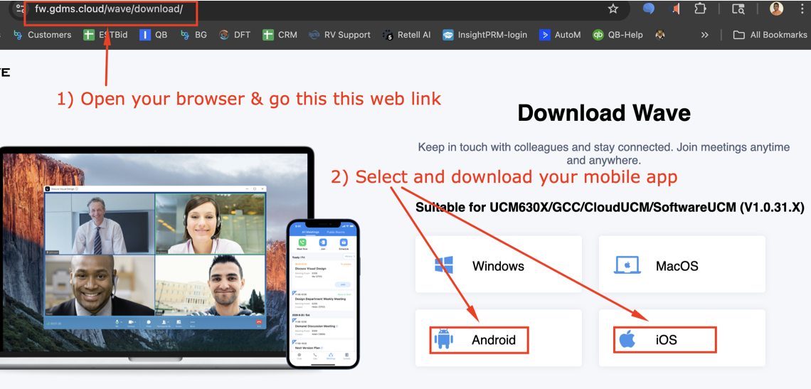 1) For mobile app, click on this link and download your mobile app (see image below) - https://fw.gdms.cloud/wave/download/