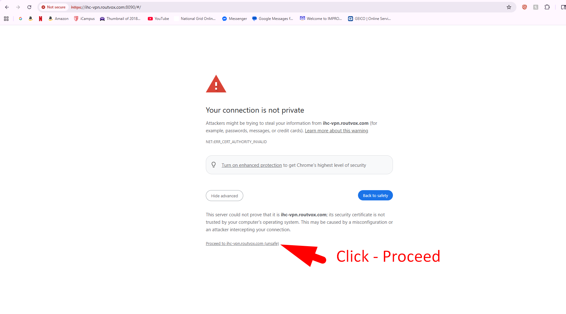 a) You may encounter a screen that says "Your connection is not private", CLICK "Advanced" then "Proceed"
